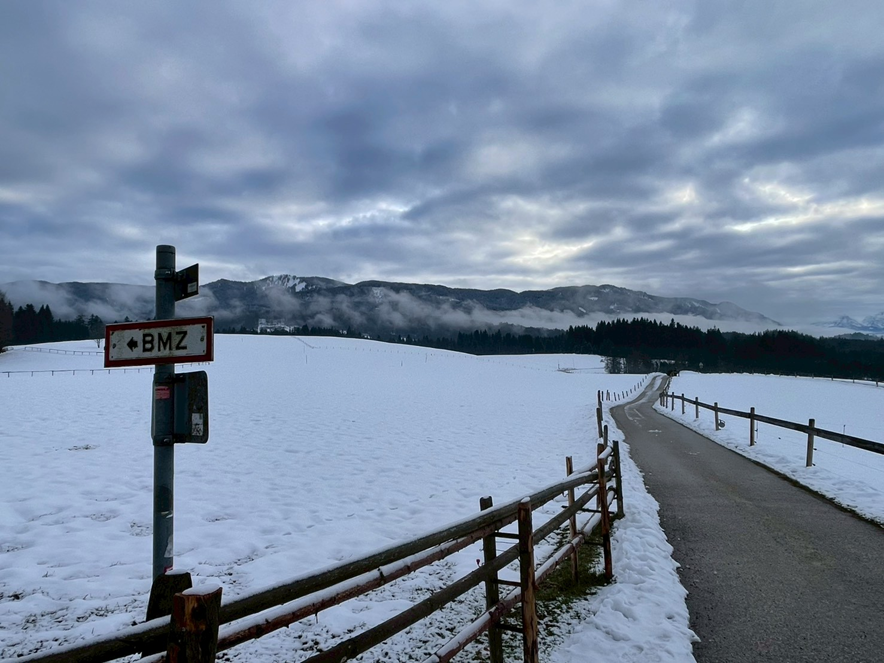 ヴィース教会は牧草地の真ん中に建っており、周りはきれいな雪景色に囲まれていました。
