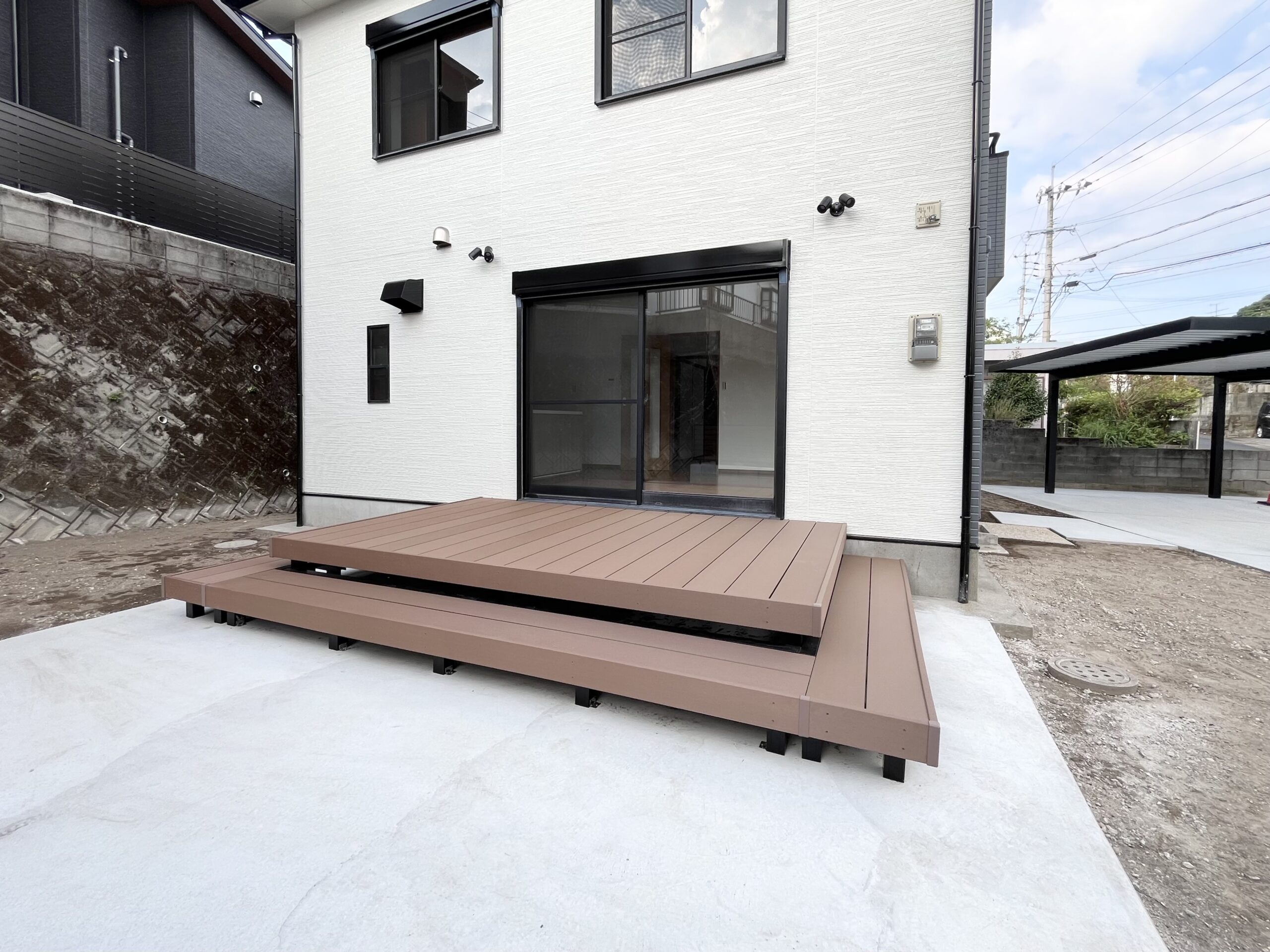 リビング横には広いウッドデッキが設置されて、開放感のあるリビングになりました