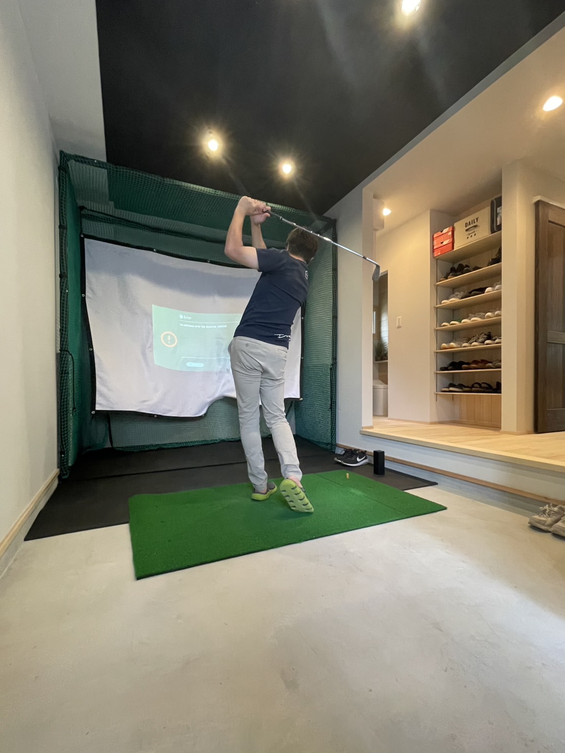 防音仕様にリノベしたことで、家に居ながら趣味のゴルフ練習や大音量での映画鑑賞が可能になりました。